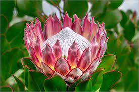 Widely grown for its outstanding flowers is the King Protea the botanical name is Protea cynaroides and it is the national floral emblem of South Africa. It is grown widely in Australia and in fact all around the world the huge flowers are the main attraction. These flowers are unique with a bold scaled appearance and a wide variety of available colors.